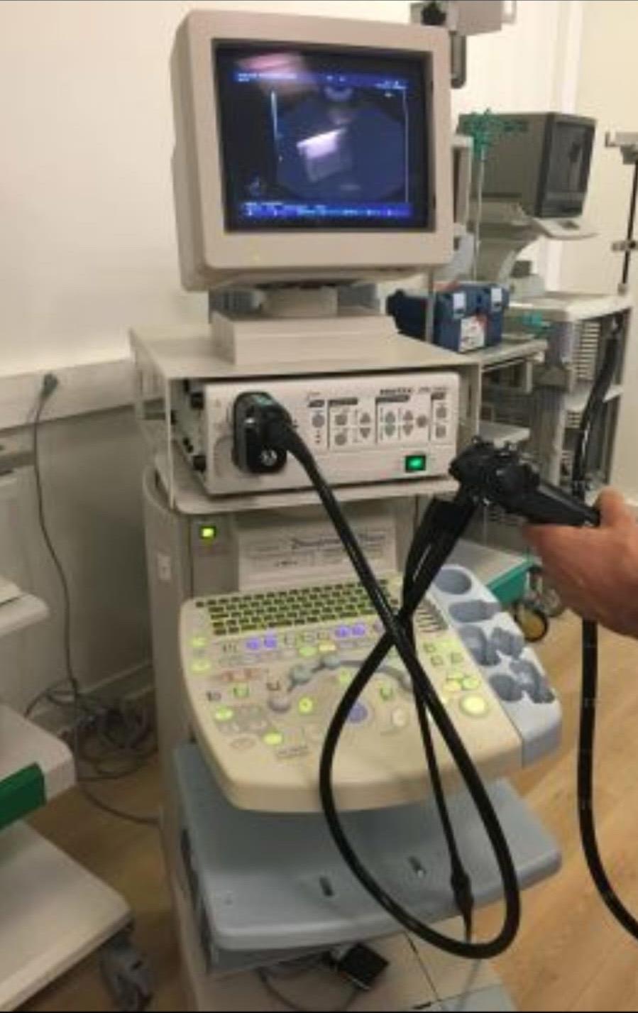 Ultrassom Hitachi HV 5500 médico, desenvolvido para exames com endoscópio Pentax, ideal para clínicas e hospitais que realizam procedimentos endoscópicos e diagnósticos de alta precisão.